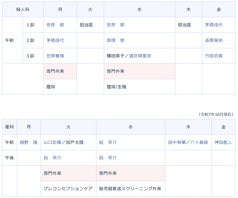 ・スタッフはすべて産婦人科専門医であることはもちろん、癌治療認定医、婦人科腫瘍専門医、周産期専門医、生殖専門医など、それぞれのサブスペシャリティーの専門医が充実しており、診療にあたります。